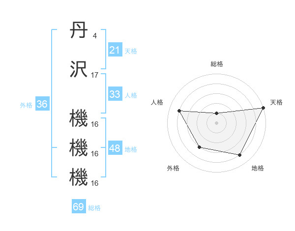 丹沢 機機機さんの総格は69画の1点!