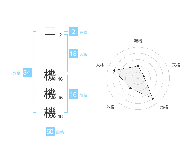 二 機機機さんの総格は50画の2点!