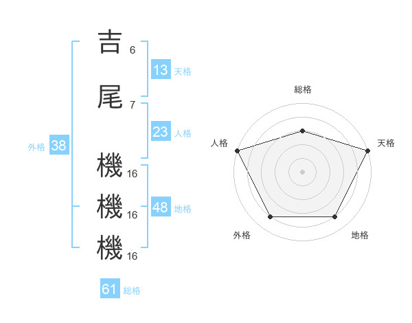 吉尾 機機機さんの総格は61画の3点!