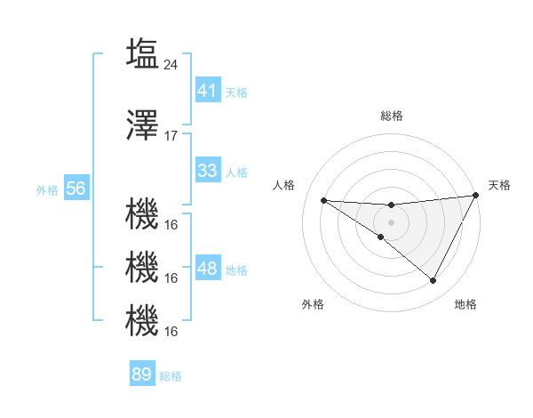 塩澤 機機機さんを姓名の画数から五運を鑑定