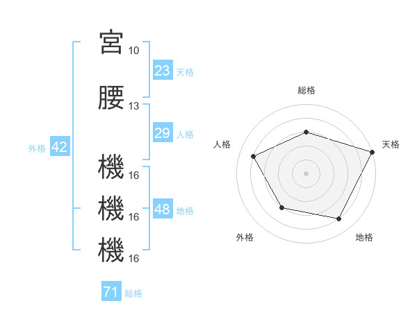 宮腰 機機機さんを姓名の画数から五運を鑑定