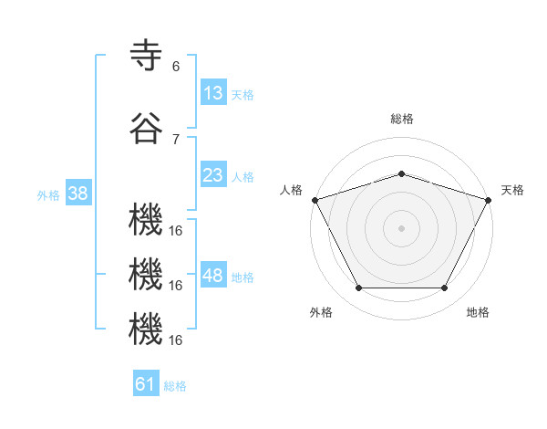 寺谷 機機機さんの総格は61画の3点!