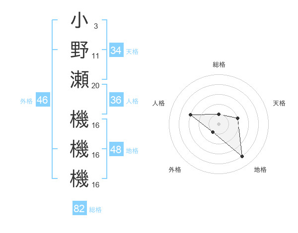 小野瀬 機機機さんを姓名の画数から五運を鑑定
