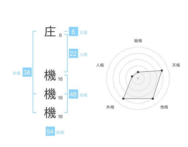 庄 機機機さんの総格は54画の1点!