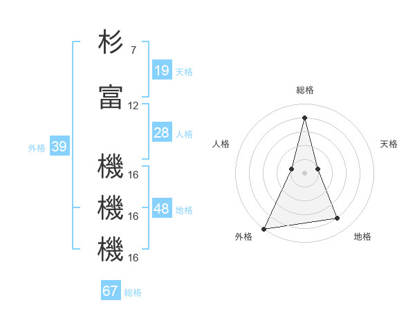 杉富 機機機さんを姓名の画数から五運を鑑定