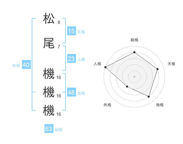 松尾 機機機さんの総格は63画の4点!