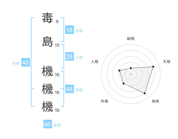 毒島 機機機さんを姓名の画数から五運を鑑定