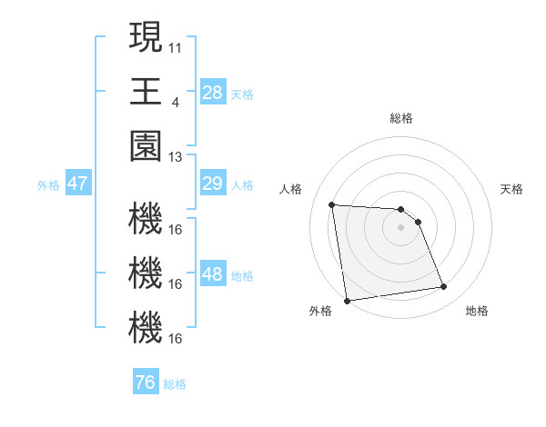 現王園 機機機さんを姓名の画数から五運を鑑定