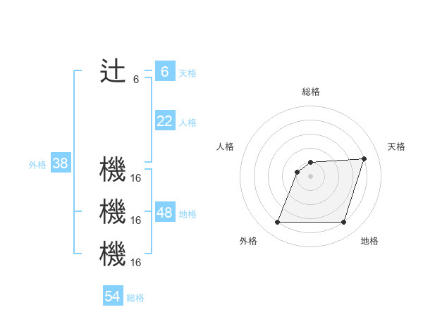 辻 機機機さんの総格は54画の1点!
