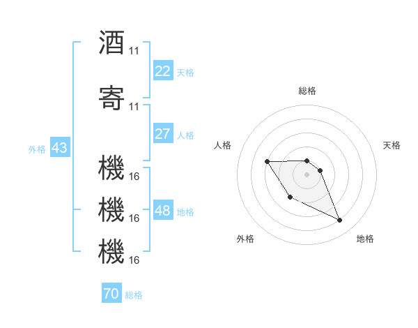 酒寄 機機機さんの総格は70画の1点!