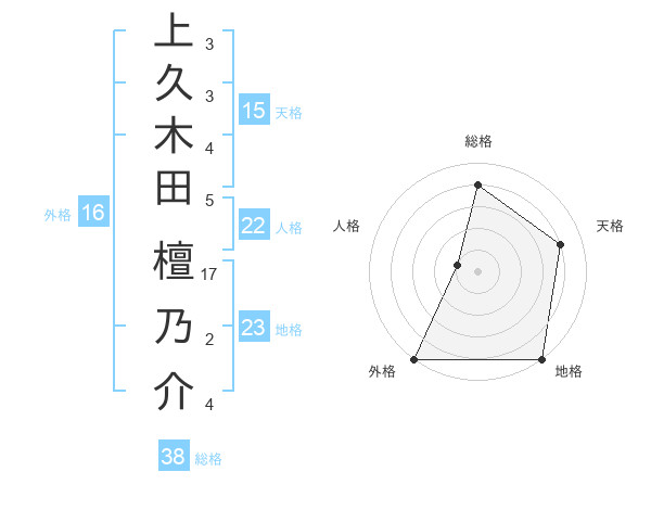 上久木田 檀乃介さんを姓名の画数から五運を鑑定