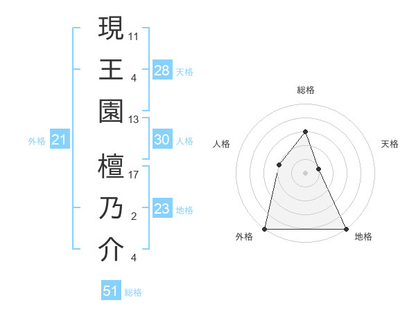 現王園 檀乃介さんの総格は51画の3点!