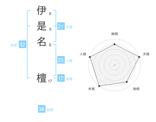 伊是名 檀さんの総格は38画の4点!