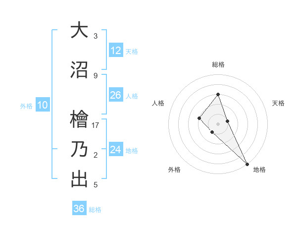 大沼 檜乃出さんを姓名の画数から五運を鑑定
