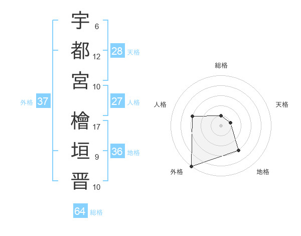 宇都宮 檜垣晋さんの外格は37画の5点!