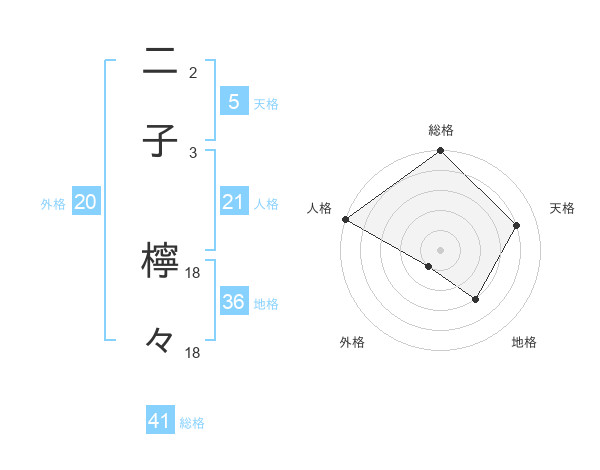 二子 檸々さんの天格は5画の4点!