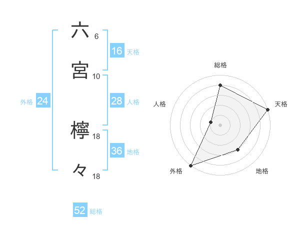 六宮 檸々さんを姓名の画数から五運を鑑定