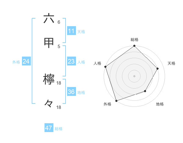 六甲 檸々さんの総格は47画の5点!