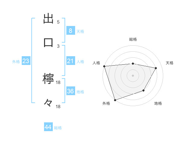 出口 檸々さんの天格は8画の4点!