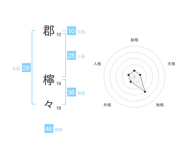 郡 檸々さんの総格は46画の1点!
