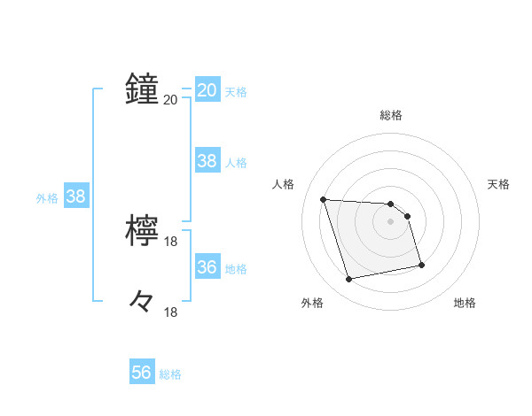 鐘 檸々さんの外格は38画の4点!