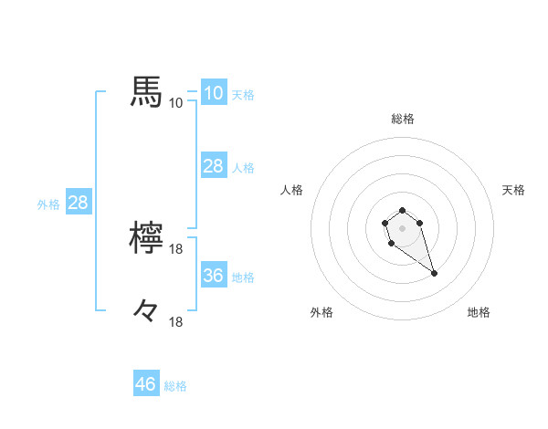 馬 檸々さんの総格は46画の1点!