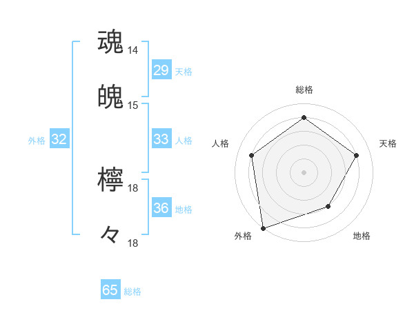 魂魄 檸々さんを姓名の画数から五運を鑑定