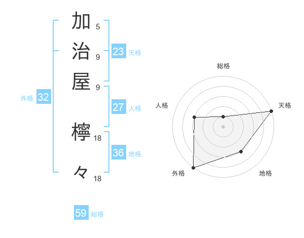 加治屋 檸々さんの天格は23画の5点
