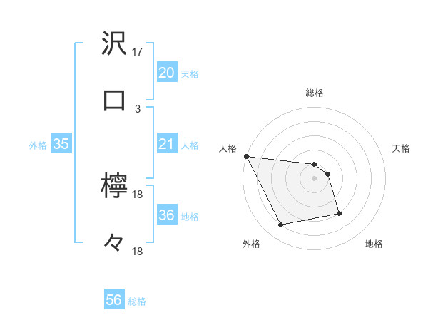 沢口 檸々さんを姓名の画数から五運を鑑定