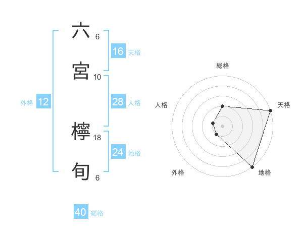 六宮 檸旬さんを姓名の画数から五運を鑑定