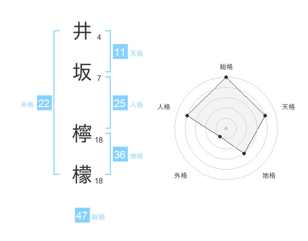 井坂 檸檬さんの総格は47画の5点!