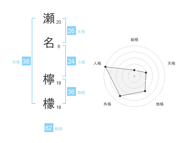 瀬名 檸檬さんを姓名の画数から五運を鑑定