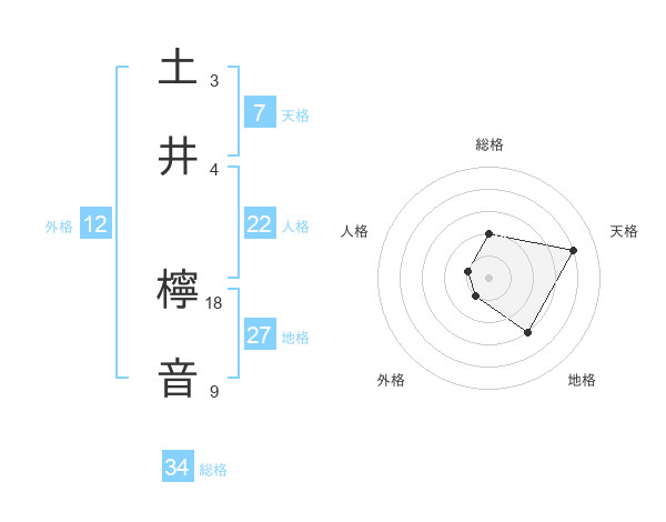 土井 檸音さんの総格は34画の2点!