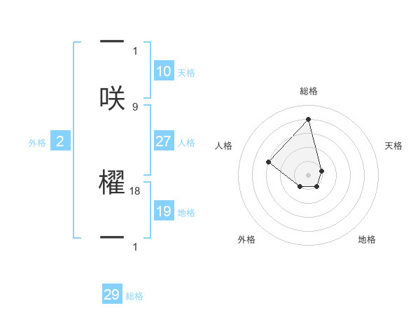 一咲 櫂一さんを姓名の画数から五運を鑑定