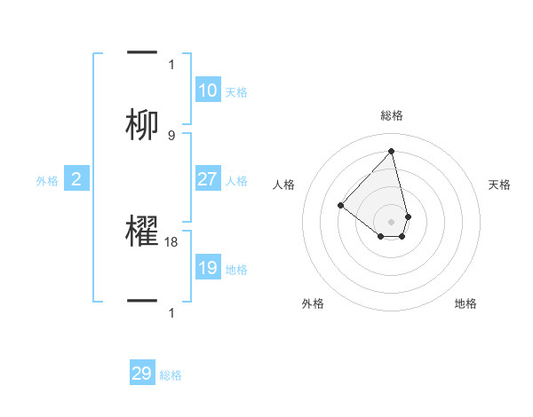 一柳 櫂一さんを姓名の画数から五運を鑑定