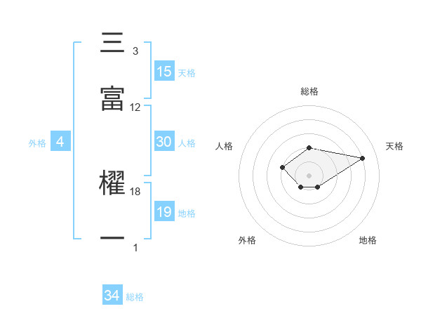 三富 櫂一さんを姓名の画数から五運を鑑定