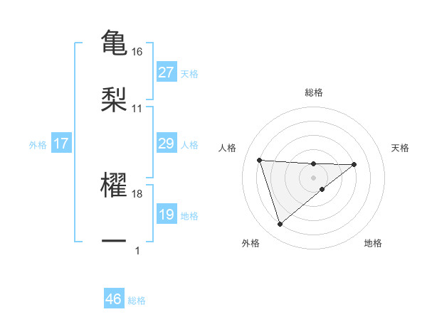 亀梨 櫂一さんの総格は46画の1点!