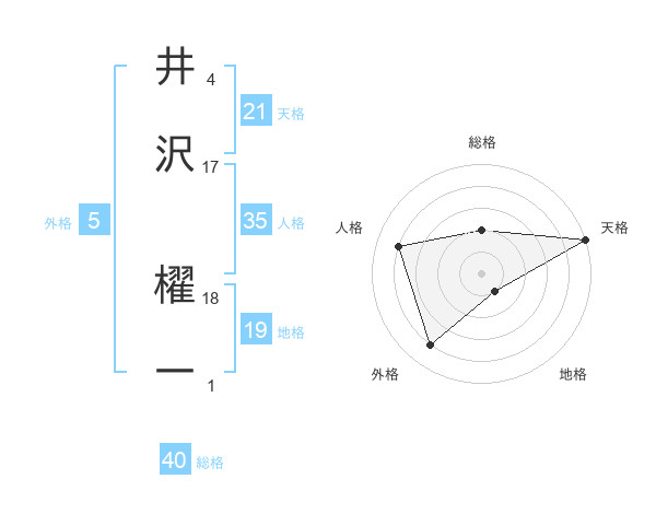 井沢 櫂一さんを姓名の画数から五運を鑑定