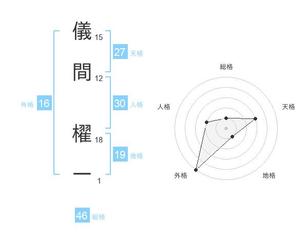 儀間 櫂一さんを姓名の画数から五運を鑑定