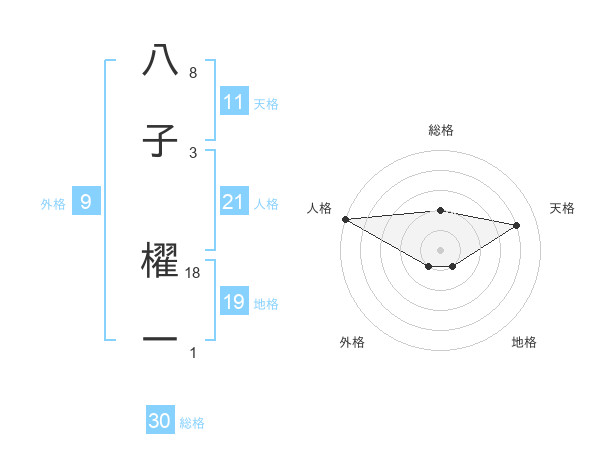八子 櫂一さんを姓名の画数から五運を鑑定