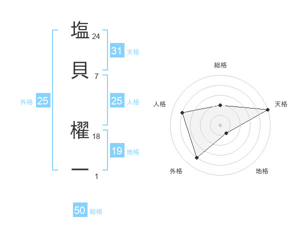 塩貝 櫂一さんを姓名の画数から五運を鑑定