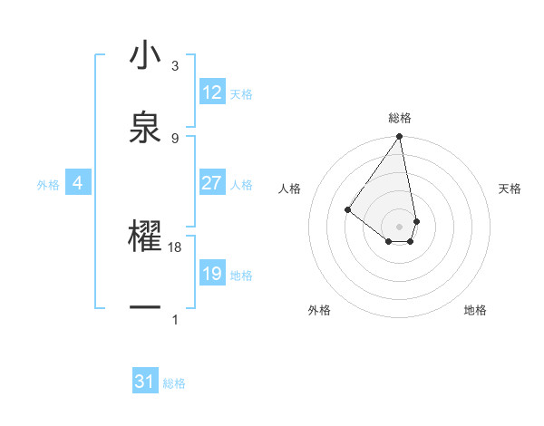 小泉 櫂一さんの総格は31画の5点!