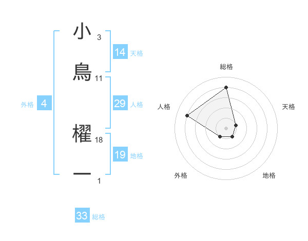 小鳥 櫂一さんを姓名の画数から五運を鑑定