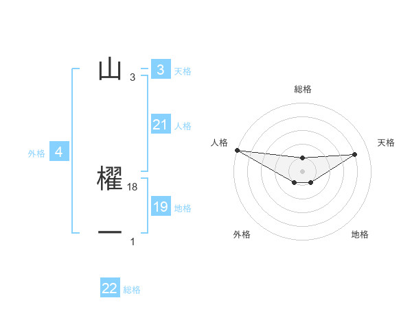 山 櫂一さんの総格は22画の1点!