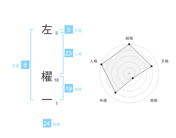 左 櫂一さんの総格は24画の5点!