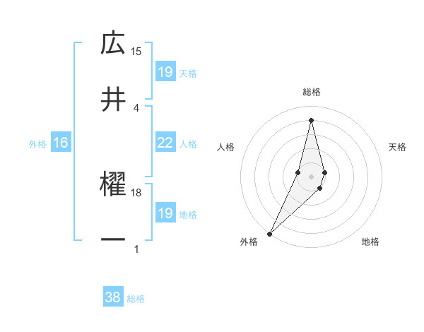 広井 櫂一さんを姓名の画数から五運を鑑定