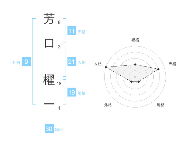 芳口 櫂一さんを姓名の画数から五運を鑑定
