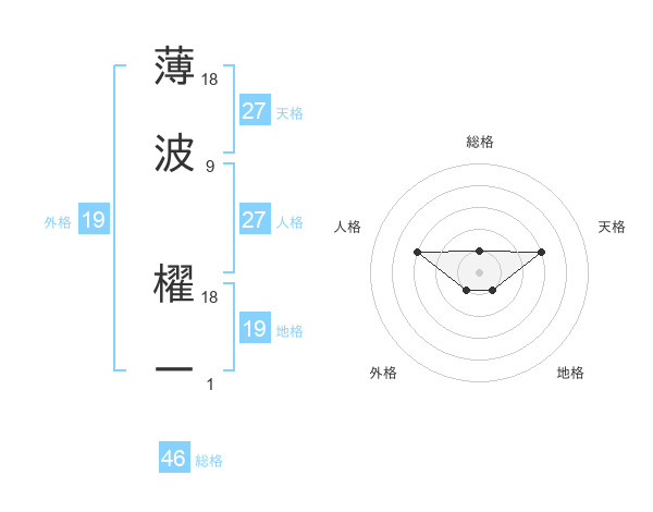 薄波 櫂一さんの天格は27画の3点!