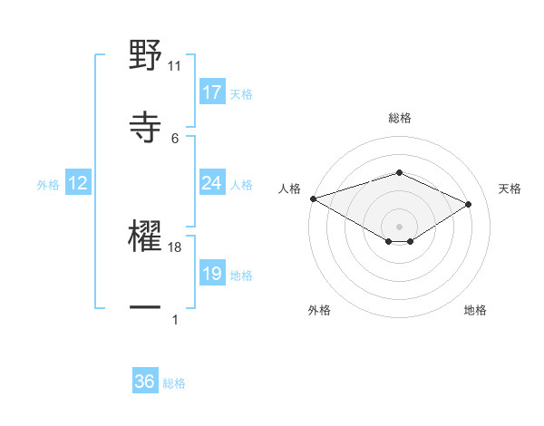 野寺 櫂一さんの総格は36画の3点!