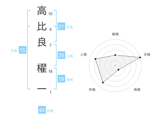 高比良 櫂一さんの天格は21画の5点!